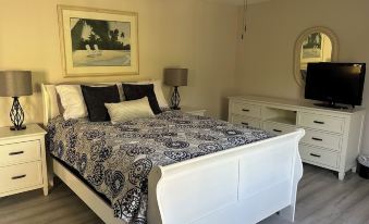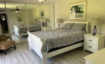 We were really impressed with the quiet location of the condo. The parking spaces are virtually at the front door, the swimming pool is less than half a block away, and the private patio with it's festival lights is a nice touch. The unit was very clean. The kitchen was well stocked with utensils. The mattress in the master bedroom was actually comfortable which is not always the case in VRBO units. The overall condo layout was exactly as described and shown in the listing and fit our vacations requirements exactly. Everything about this condo was perfect. However, the television provider system (I think is Google TV) is very confusing and certainly not user friendly. I am sure that future guests that are more tech-savvy, will not have the problems that we encountered. We would certainly return to this unit. Jim & Ruth H.