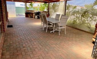 Modern comfortable facilities with a quiet bbq/patio area which is closed in to prevent runaway toddlers :-) :-) :-)