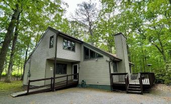 Your home away from home in the Poconos with 3 bedrooms, fully equipped kitchen, open concept living room beautifully furnished featuring real wood fireplace, smart tv, bluetooth speaker, lots of natural light. Each bedroom offers a different bed size - a king, a queen, and two full-size beds with twin size trundles. This awesome house also features two full bathrooms - the master suite bathroom with a bathtub and the second one with a shower. Best part - we supply all linens and towels. There's a loft with smart tv, game boards, a combo game table for the kids and a comfy sofa bed. If you love reading you are going to appreciate our reading nook with almost 200 books! Looking for a place with plenty outdoor? We have it. From the furnished front deck featuring gas heater for those crisp fall nights, to a screened porch with cushioned chairs, coffee table and ceiling fans for those lazy, warm summer afternoons, to a spacious backyard deck with dinning table set and grill where you can barbecue your family dinner. To top it all there is a fire pit where your family will certainly make happy memories of s’more nights. In addition our guests have access to all the community amenities - from lake with kayaks, pedal boats and canoes to outdoor pools to cool off on those hot summer days to indoor pools to help you go through the long fall/winter days. Our community also has it's own ski slopes and lift and it literally runs by our backyard! (please note that the complimentary passes we offer to our guests do not give access to the lift or ski gear, but guests may purchase daily passes to it). Our guests also have access to basketball, indoor and outdoor tennis courts and playground. With so much to offer, specially the experience that a 4.97 star guest review on another travelling site (yup, that one...) has giving me, I know you'll enjoy your stay at our cozy house.About pets:Pets allowed: dogs less than 50 lbs per pet (limit one pet total).About checkOut:Check out before 11:00 AM.About children:Children allowed: ages 0-17.About customRules:Guest pays 4: damages caused to the property/belongings, violation of community rules fines, failure to dispose of trash, replacement of lost fobs..Grill must be cleaned, patio furniture covered, used kitchen utensils, dishes, pots, air fryer basket must be washed and left in their original place,We are not responsible for the community amenities schedules and rules. Extra amenity passes can be purchased at the community members service office.About checkIn:Check in after 3:00 PM.About smoking:Smoking is not permitted.About minBookingAge:Minimum age to rent: 21.About events:No events allowed.