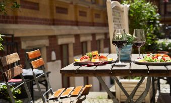 酒店雖然在一條非常冷清的街道上,但是離這個城市最著名的格萬豪斯音樂廳卻非常近,穿過音樂廳門前的廣場就是老城區,本身可走的範圍不大所以這裏也還算方便。這是一家很小規模的酒店,沒有24小時前台,所以晚上回來要拿鑰匙開旁門,我沒有遇到大門關,這都不是主要問題。酒店早餐不錯,不過我是另付費的15歐元一位,我吃了兩天居然沒發現有熱食,其實有的,是我自己沒看到。酒店房間也算大,有兩個窗户,窗外是酒店的小花園。房間裏的設施很簡陋,床也很簡陋,很低,床上用品顯得也很簡陋。我來的時候正好趕上高特音樂節萊比錫正熱鬧,所以可能這期間酒店比較貴。