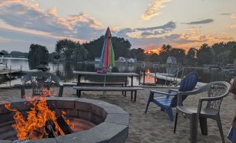 Historic Irish Hills, Located 1 mile from a winery with concerts 3 nights a week, and minutes away from Michigan International Speedway. Welcome to Evans Lake Waterfront in Irish Hills! This lake retreat features a private beach and is minutes from Wamplers, Sand and Clark Lakes. Perfect for family getaways, you can relax or enjoy water activities. The spacious two floor house sleeps up to 10 guests. Just 55 minutes from Metro Detroit, you’re close to the Michigan International Speedway and a winery with concerts three nights a week. Unwind with a beach bonfire under the stars. First floor is very spacious with a ton of room for games, as well as 30 foot private beach just for the residence which has steps on the dock for lake entry. Lake does have algae which is normal for fresh lakes. You will come across fish and baby turtles that swim close to shore! The master bedroom and bunk bedroom has a shared ceiling. Currently no boat access to lake Evans is available for guests.