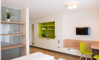 Questo aparthotel vanta un angolo cottura con un frigorifero e un piano cottura. In camera potrai usufruire di il Wi-Fi gratuito e di canali via satellite. A tua disposizione avrai anche una scrivania e un microonde. Il servizio di pulizie viene offerto tutti i giorni.
