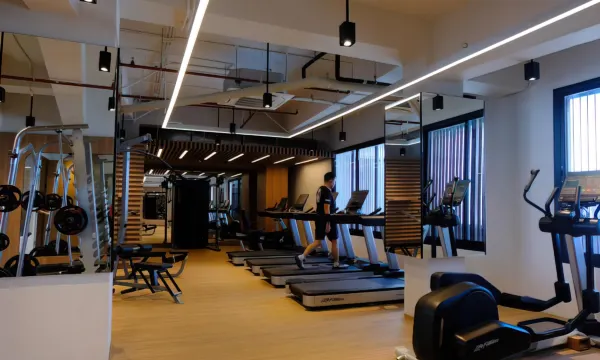 During your down time, go for a swim in the outdoor pool. The gym provides a place for guests to work out.
