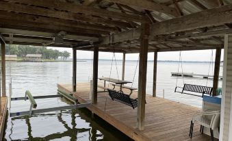 This small piece of paradise sits in one of the most sought-after subdivisions on one of the most sought-after lakes in the state. The water is deep and calm. Four bedrooms and three bathrooms are in the main house, with a large living area and dining area, laundry and kitchen and two bedrooms and two baths downstairs, two bedrooms, one bath upstairs. The downstairs is fully accessible with no steps between drive, downstairs, and back deck. Over the heated and cooled game room/garage there is a large sleeping area with a full bath. Property sleeps 15 comfortably. The kitchen has new quartz counter tops and all new stainless appliances. The property went through an extensive re-model and update in 2020. New floors, interior paint, quartz counter tops, lighting, fans, appliances, crown molding and more! Outside there is a boat dock with fish cleaning station. Enjoy the best sunsets on the lake from the dock and backyard!About pets:No pets allowed.About checkOut:Check out before 11:00 AM.About children:Children allowed: ages 0-17.About customRules:Please do not park in the grass. There are septic lateral lines across the front yard..About checkIn:Check in after 3:00 PM.About smoking:Smoking is not permitted.About minBookingAge:Minimum age to rent: 25.About events:No events allowed.