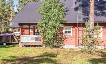 180 km north-east of Seinäjoki, L.Valkeinen 100 m (length 2 km, width 1 km), shallow, hard sand bottom, no boat provided. Shore shared. Glue log holiday home 2007. Downstairs (63 m²): living room/kitchen, bedroom 2 beds, dressing room/utility room, washroom, sauna (ever-ready electric stove electric stove), roofed porch (45 m² with furniture). Upstairs (42 m²): 2 bedrooms with 2 beds in each, hall convertible sofa for 2 persons, balcony (10 m² with furniture).