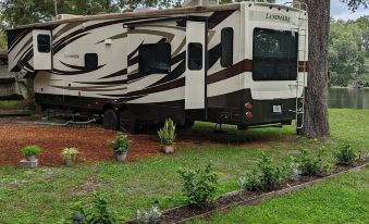 Enjoy the natural beauty surrounding this historic riverfront getaway in this upscale 40' LandMark Sequoia luxury RV 5th Wheel.. This property located in Old Town FL situated between Manatee Springs and Fanning Springs on the banks of the Suwanee River. Ideal for kayaking, canoeing with boat ramp access steps away. You can also bring your boat (22' max) or kayaks with access to our dock. Greenway hiking and biking Trail nearby.