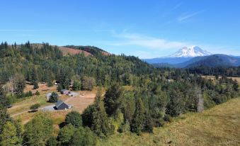 This newly refinished farmhouse is located just 15 minutes from the Nisqually entrance of Mt. Rainier National Park. Enjoy incredible views of Mt. Rainier throughout the property and farmhouse.