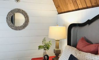 Built in 1976 with original shiplap, exposed beams + cedar throughout. A 2019 remodel preserving the best and adding modern updates. Wood burning fireplace, vaulted ceilings, deck with a lake view + unique design details around every turn.