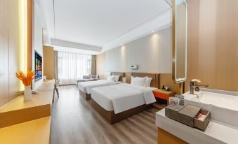 剛開始衹覺得他們家服務態度特別好,結果進房間特別驚喜,不管房間佈局也好設施設備都特別用心,連床墊都是席夢思的,床墊特別舒服,酒店一次性用品都特別上檔次,尤其拖鞋有點浪費了,房間特別大,還有沙發,氧氣也是如果不會操作工作人員會給你耐心講解教會,,他們家真的很認真的在做酒店,這一路過來他們家真正治癒了我。