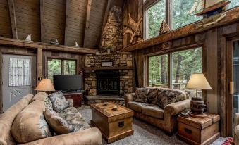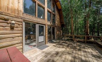 The house sleeps 8. It includes 3 bedrooms and 2 full baths. The master bedroom is on the main floor with a King bed. The bathroom on the main floor has a shower and jacuzzi tub. There are two bedrooms on the second floor; one with a Queen bed and the other with 2 Twin beds. The bathroom upstairs has a bathtub/shower combination. The upstairs loft overlooks the family room and has a view into the forest with a Queen sleeper sofa. The kitchen has typical appliances as well as a microwave, dishwasher, coffee maker, toaster, blender, crockpot and all the utensils, cookery and plates/glassware you should need. The dining area has a table for 8 and 4 stools under the kitchen peninsula. The family room has a Smart TV with YouTubeTV and WIFI. Heating is electric so each room can be set individually. There is AC for the main area on the first floor and also have ceiling fans and extra fans in the closet. Outside is a patio deck, picnic table, a couple of chairs and a Weber charcoal grill.
