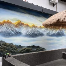 Andammo a Lijiang da Shenzhen Erano già le sette o le otto di sera quando arrivammo a Lijiang. Improvvisamente entrammo nella Wutongli Inn e fummo attratti dalla pulizia e dall'ordine del cortile. Era molto confortevole ha detto che c'è un lato nel cortile. Il muro è fatto di rilievi della Montagna innevata del Drago di Giada di Lijiang e di Rizhao Jinshan, che sono molto realistici.