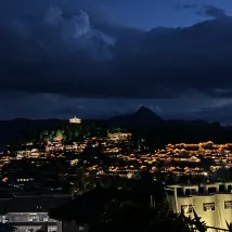 Dal tetto, si può ammirare il panorama notturno della città vecchia di Lijiang ogni sera.