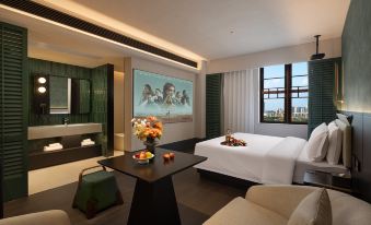 The Platinum Anna Hotel is situated in the heart of Li Ling's commercial district, Xinhua Lian Plaza, and is distinguished by its castle-like appearance. It is conveniently located within walking distance to the bustling areas of the commercial district. The hotel offers a dedicated and free parking space at the entrance, providing convenience for guests driving themselves. The hotel's rooms come in various types, including family-friendly rooms, rooms with panoramic views, bathtub-equipped rooms, and rooms with large-screen entertainment systems. These rooms cater to diverse travel needs. Each room is equipped with a smart home system, zero-pressure mattresses, and high-quality cotton bedding. Some rooms also feature a 100-inch projector, ensuring a comfortable and enjoyable stay. Additionally, the hotel provides free concierge services, including laundry, pick-up, and delivery services, allowing guests to enjoy personalized care without leaving their rooms. The hotel features a 24-hour fitness center, and guests can enjoy complimentary coffee and lemon tea upon arrival. In the evening, a soothing evening meal is delivered directly to guest rooms.