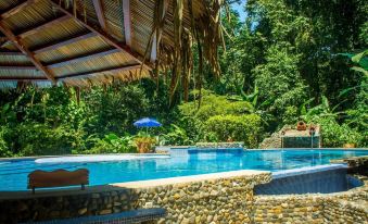 The hotel is located in a green deep jungle, were you can find with some luck also animals (we saw a sloth and some agouti) Beautiful swimming pool and nice rooms. The only thing that has to be improved is the breakfast: we tried it and it was really good, but it starts at 8.00am, quite late for Costa Rica times, especially if you want to make any tour around.