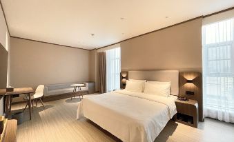 酒店房間超級好,大堂也超級大,房間平米大小趕得上全季了,而且還配有健身房,前台工作人員也很專業熱情,溝通延時退房也同意,入住體驗超級棒!!!!