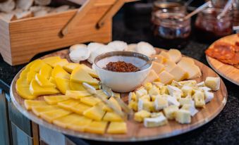 Neutral: the breakfast had a big variety. But the tapas looked stale and bread was stone hard to cut with the knife. Egg tarts and cakes were delicious