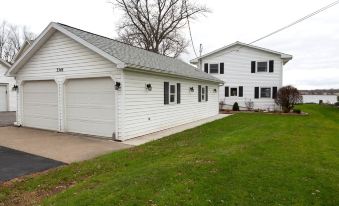 Beautiful conesus lake house. 100 plus feet of dock for lake access and boat or pwc docking. Walk into the water to cool off or relax on the giant trampoline platform! Plush flat yard with plenty of lake frontage! Off street parking with large garage for your personal items or vehicle. 3 bedroom with sleeper futon for extra guests. 2 full baths.