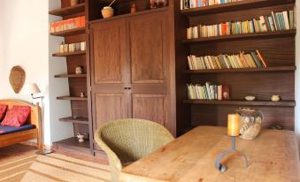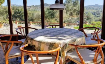 The renovated, typical Mallorcan country house for up to 6 people offers plenty of space both inside and outside and has a beautiful pool overlooking the countryside. In the main house with 3 bedrooms and as many bathrooms comfortably accommodate 6 people. The spacious lounges - a fireplace room with sitting area and satellite TV, a library with dining table and a conservatory with another dining table, sitting area and another fireplace - are available year-round thanks to central heating, the bedrooms are equipped with air conditioning.