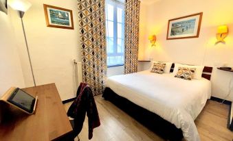 Hôtel sans prétentions. Nous avions une chambre côté rue, pas très grande mais correcte; si vous voulez être sûr d'être au calme, demander une chambre sur l'arrière (il y a un joli carré de verdure dans l'arrière-cour) ou dans le pavillon annexe au fond. L'accueil est courtois, mais pas très bavard.