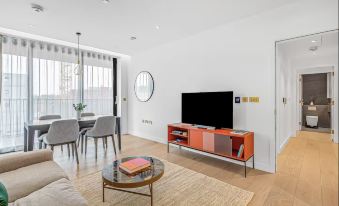 Modern, clean apartment close to King’s Cross/St Pancras Tube/Intl train station. Amenities were good, including full gym. Close to convenience store for food basics.