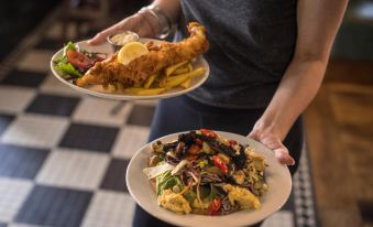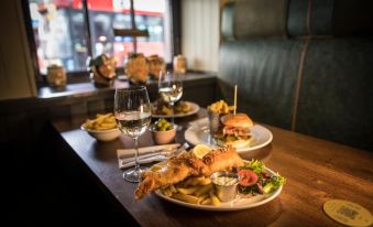 abbiamo cenato una sera durante la nostra vacanza a Londra. Pub tipico british, ci siamo accomodati in autonomia al tavolo, abbiamo prenotato tramite l'applicazione a in breve tempo siamo stati serviti. Cibo ottimo e sono disponibili anche varianti per vegetariani e vegani. Qualità- prezzo nella media. Interessante anche il fatto che abbiano stanze per il pernotto