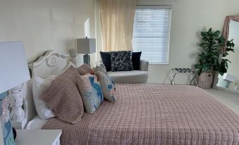 The king bedroom has a daybed that features two twin beds.