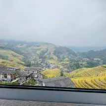 Risposta dalla struttura: hello, thanks for choosing us and give us very nice feedback, we would try our best to make here more comfortable for everyone , we are at longji terrace cenrure point and outside window can have the whole view for rice terrace, best place to have holiday and have a nice day.---from Liliya
