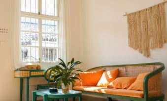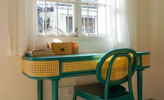 Classic And Elegant King-sized Bed Room With A Retro And Nostalgic Post Office Green Theme / One-bedroom, One-living-room With A Balcony.