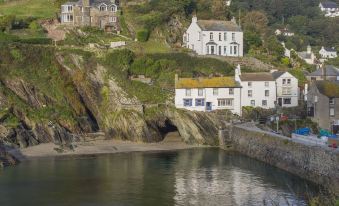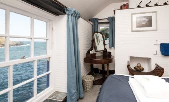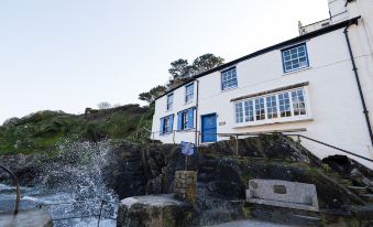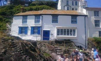 Willy Wilcox Cottage is the listed seafront cottage, with the bright blue door and shutters, seen on so many paintings and postcards of both Polperro and Cornwall. The cottage is one of Polperro's historic landmarks partially built over a cave and previously belonging to the late 18th century fisherman, Willy Wilcox, reputedly believed to have been involved in smuggling. It has four bedrooms, all have sea and fishing harbour views. The beamed sitting room has an open fire with copper canopy and an ancient pickling well for nets. The well and the mysterious narrow passage between the cliff face and the cottage are illuminated and visible from the sitting room through a glazed window. Legend has it that Willy was trapped by the sea whilst secreting contraband into the cave and on the beach below! The room also boasts a large deep bay window, a perfect vantage point with seating to enjoy the heavenly views looking over the fishing boats in the harbour and views out to sea. The unique raised beach terrace has stunning far reaching sea views, a great place for breakfast, a nightcap or any time in between and there is also an enclosed rear terrace. We welcome you with a home-made cream tea.