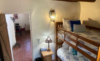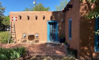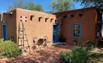 A romantic, rustic hideaway in a true 'oasis in the desert'. Our authentic adobe casita is situated within Los Terrones, a 40 casita compound set among 6 acres of meadow, in the Village of Los Ranchos. 'Casita Chueca' has exposed vigas (beams), brick floors with radiant heat and a huge picture window on the east side offering plenty of morning light and views to the wildflower meadow.