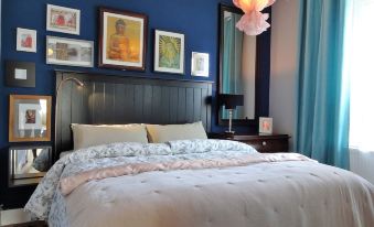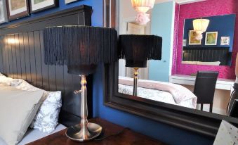 Third Bedroom: A touch of luxury with a diva atmosphere. A large, high black bed (180 x 200) with a thick memory foam topper ensures weightlessness. There is a lighted wardrobe for everyone with a dressing table reminiscent of a theater wardrobe in between and an antique chest of drawers with a dimmable nostalgic lamp ...