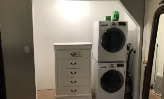 The cabin has updated appliances, including a dishwasher, washer/dryer, and HVAC. The one bedroom is perfect for two, and there's a queen-size sofa sleeper that can comfortably sleep two more. We love four-legged children, so this cabin is pet-friendly.