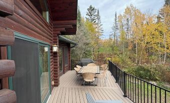 There is a large deck with four new Adirondack chairs as well as a dining table and chairs providing a relaxing space for guests to unwind after a day exploring the North Shore. Here you will also find a gas grill. Just past the deck is a firepit for the group to enjoy.