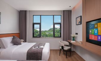新裝修的酒店房間比較智能,都有小度操控,住起來很方便,房間還配備了小冰箱免費的飲料,咖啡還含早餐,早餐也是免費的,有免費的停車場,衞生非常乾淨。前台小姐姐服務很熱情,周圍交通也很方便,出門就有出租車離錦滙廣場也很近,非常值得推薦