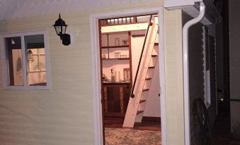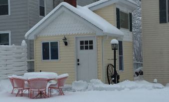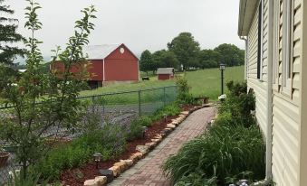 Our recently renovated 150 sq. foot Tiny House has a brick patio & private entrance in a separate building. Built in 1891, the Summer Kitchen features the original exposed beams and chimney. The loft bedroom has a 5' window overlooking the gardens with a view of Leaser Lake in the distance.