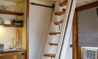 The sleeping area is in a loft utilizing STAIRS WITH A LADDER TYPE PITCH. By renting this space your acknowledge you and your guests are in good enough physical condition to climb the ladder, and agree to always face the ladder when in use, up and down.