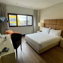 La stanza è ordinata, relativamente grande e silenziosa, ma non c'è la modalità luce notturna e non viene fornita acqua potabile. La colazione è continentale e quasi la stessa ogni giorno. È relativamente monotona ma il necessario è latte, succo di frutta, frutta, pane, uova, salsiccia o bacon ci sono tutti. . Trasporti: la metropolitana è relativamente lontana, ci vogliono 20 minuti a piedi, ma non ci sono alberghi nelle vicinanze. Appartiene ad una zona di sviluppo.