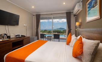Hotel posto a metà strada tra il porto e l’aeroporto di Mahè,quindi in posizione strategica per i vari spostamenti,soprattutto per chi decide di affittare una macchina per visitare l’isola.Situato in collina,da cui si gode una splendida vista sulla baia,il centro di Victoria dista 20/25 minuti a piedi.Lo staff è molto gentile e disponibile,la piscina piccola ma utilissima e rigenerante.Ottima colazione,ottimo ristorante .