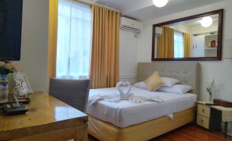 So, there was a typhoon rolling to the north of the Philippines when we were staying here. It rained biblically during our entire stay. We rented the "Penthouse" room which just meant is had a refrigerator and also a king bed instead of a full or queen size that seems to be typical in Manila. The staff here was incredibly friendly and accommodating. My only complaint was that the rain brought extreme humidity, and our AC unit in our room was not up for the challenge. We joked that we rented the sauna room. The hotel is also a short walk to quite a few restaurants and a night market with live music. I would stay here again if the AC is working...