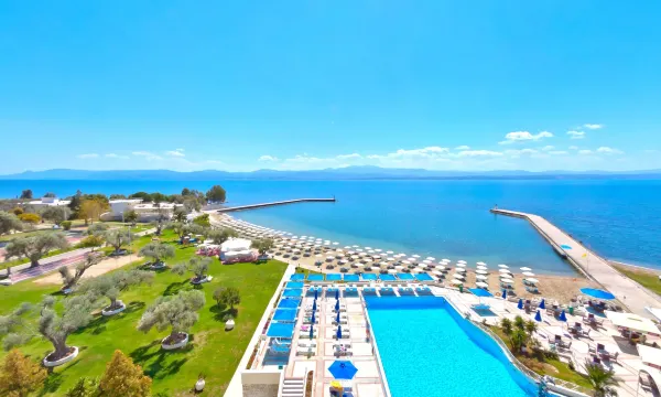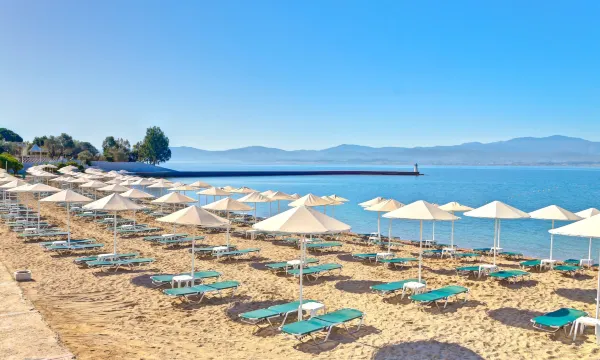 L'été, l'hôtel (qui a grand besoin d'être rénové) est à fuir. Trop de monde pour trop peu de places sur les transats (plage et piscine) qui sont "réservés" via des serviettes de bain dès 6h30 du matin... Et l'hôtel laisse faire. Trop peu de personnel, ce qui explique la saleté, les poubelles non vidées etc. Un énorme gaspillage de nourriture, notamment des familles qui reconstituent un buffet complet à table et privent les autres membres de l'hôtel. Moment pénible donc en restauration. Florence de Fram est super, très professionnelle concernant les excursions. Elle nous a conseillé d'aller manger à Eretria, ce qui vaut le coup (petit port sympa et vraies spécialités), mais à 4 km et 7 € la course en taxi pour un trajet... Ce n'est pas le but non plus quand on prend une formule all inclusive. Bref nous n'y retournerons pas. Et ne passerons plus par FRAM (publicité mensongère).