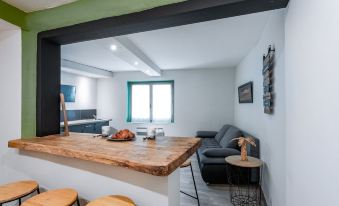 L'appartement est situé dans les remparts du village. Il s'agit d'un logement dans l'ancien typique et bien aménagé, mais avec des petites pièces. Logement idéal pour les personnes jusqu'à 1m70. Au-delà, bosses assurées (plafond et encadrure de porte bas) sans parler de la pluie de douche à oublier à moins d'être courbé ou assis dans la baignoire! Toutefois, l'environnement global est charmant et la situation est pratique.