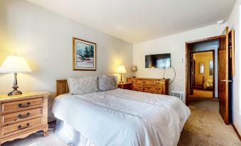 The master bedroom has a Queen bed and en-suite bathroom. The second bedroom also has a Queen bed with TV and shared bathroom in the hallway. The couch in the living room also has a sleeper sofa for additional guests. All guests receive complimentary full access to Snowcreek Athletic Club to enjoy facilities including indoor heated pool, steam/sauna, full fitness facility, yoga, pilates and cycle studio and more.
