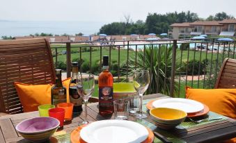 The holiday apartment is located in a quietly situated resort on a hill on the western part of Lake Garda, approx. 1 km from the center of Manerba del Garda.