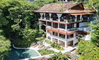 Casa Vista Azul is a fabulous four-floor Balinese villa with a 2 level pool house, custom-designed furnishings using exotic hardwoods and original ceramics. Every detail of this villa exudes peace and tranquility, providing a place to enjoy quality moments with loved ones as well as personal contemplative space for yoga and reading. The pool area is indeed an oasis with a waterfall and beautiful gardens. The pool has a lap swim area and a shallow area for young children with plenty of shade and a sundeck. The top 3 levels of the villa have sweeping views of the Manuel Antonio National Park and the Pacific Ocean.