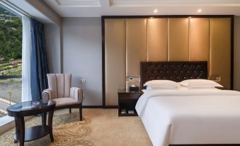 Yitelandi Grand Hotel (Maoxian Ancient Qiang City Branch) is located in Maoxian County, Aba and Qiang Autonomous Prefecture, Sichuan Province. It is a comprehensive large-scale hotel integrating luxurious accommodation, ecological sightseeing and leisure vacation, skillfully combining the beauty of western Sichuan's mountains and rivers with a comfortable stay experience.The hotel enjoys a superior geographical location, adjacent to the Ancient Qiang City of China. Step out of the hotel, and you can embrace the rippling blue waves of the Minjiang River; open the window, and you will see the river flowing gently. Moreover, it faces the magnificent and lofty snow-capped mountains across the river. By day, you can admire the snow-capped mountains reflecting in the river; by night, you can fall asleep to the sound of the flowing river. Every moment here offers an immersive natural enjoyment. The hotel has a total of 202 guest rooms, covering various types such as standard rooms, Minjiang River View Rooms and luxury family suites. Each guest room has a construction area of more than 40 square meters, and the spacious space is matched with exquisite decorations, making the rest time more comfortable.The supporting facilities are equally comprehensive and considerate: the KTV and tea area meet the needs of leisure and entertainment, the conference center is suitable for business reception scenarios, and the gym and table tennis room provide convenience for energetic trips. Whether it is a family gathering, business negotiation or casual relaxation, you can find an ideal place here. What's more noteworthy is that the hotel fully understands the importance of convenient travel. There is no need to worry if you come by self-driving, as the free parking lot is always available; nor do you have to be concerned about battery life if you drive an electric car, because the hotel is equipped with exclusive charging piles to extend the range of your journey, ensuring every stop is secure and stable.Starting from the hotel, it is also extremely easy to explore the beautiful scenery of western Sichuan: the rolling sea of clouds in Jiuding Mountain and the clear blue water of Songpinggou are all within easy reach, turning the magnificent scenery into a common gift during your journey. Whether you are traveling for business and pursuing efficiency and comfort, or on a leisure vacation and longing to get close to nature, Yitelandi Grand Hotel will invite you to embark on an unforgettable western Sichuan accommodation journey to the secret land of mountains and rivers by the Minjiang River with its warm and thoughtful service and complete and high-quality facilities.The hotel offers a total of 202 spacious guestrooms and suites, each with a floor area of over 40㎡. Amenities include KTV rooms, tea lounges, bathing facilities, and a conference center, catering to both business and vacation needs.With meticulous service and stunning natural scenery, Etranti Grand Hotel invites you to immerse yourself in the captivating landscape along the Min River.