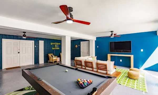 This villa offers a mix of space, comfort, and activities for all ages. Guests can swim, play games, grill out, or take a bike ride around the island, all from the convenience of a single home. The newly renovated interior and modern amenities make it easy to relax and enjoy time together.