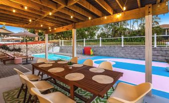 Sì, Spacious Villa with Heated Pool, Golf, Game Room, Basketball, Pool Table, Bikes dispone di una piscina.L'hotel Spacious Villa with Heated Pool, Golf, Game Room, Basketball, Pool Table, Bikes dispone di piscina?