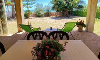 - The ground floor houses a large and cool veranda equipped with garden furniture: deckchairs, large table for 12 comfortable table seats, small table, charcoal barbecue with grill; the ideal place for outdoor lunches and dinners, to relax with friends or reading a book. The veranda is surrounded by a large garden, which is 6 meters from the beach, characterized by the colors of bougainvillea and oleanders, and the aromas of lemons, mint and flowers of magnolia. There are also a wonderful mulberry tree and typical trees of the Mediterranean like ficus, araucaria and Aleppo pine. The garden is equipped with an outdoor solar-heated shower.