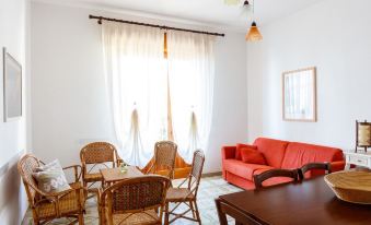 large living room with balcony / veranda overlooking the sea, 32-inch TV dining area with extendable table up to 10/12 table seats, wicker lounge and comfortable double sofa bed, the ideal place to fall asleep cradled by the sea;