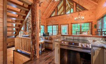 This adorable cabin has 1,500 feet of living area which includes a bedroom on the main living level, king bed in the loft, 2 bathrooms, great room with TV and stone fireplace and a kitchen with granite counter tops and stainless steel appliances.